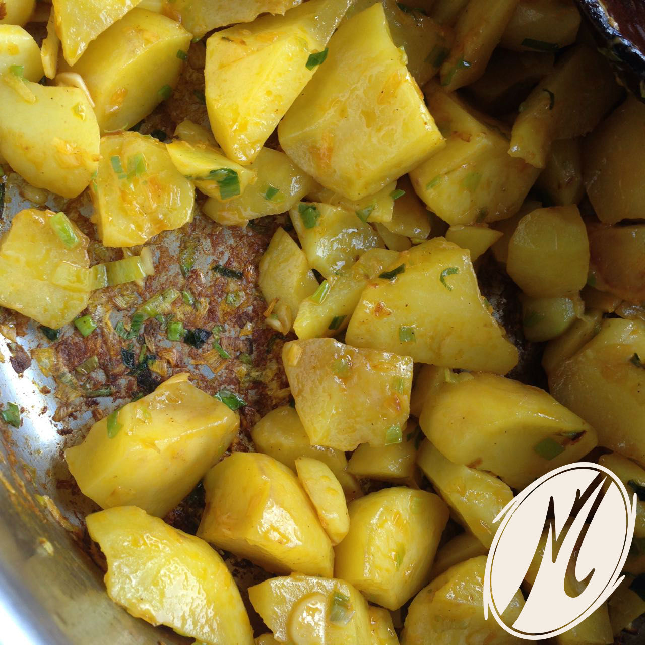 Observe la parte dorada, pegada a la olla que se formó al saltear las papas.